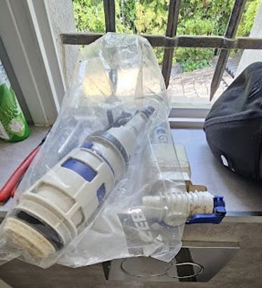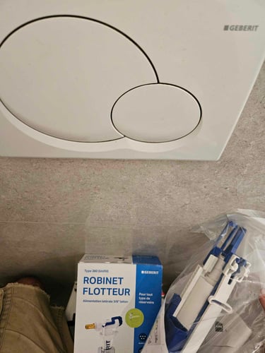 À Cannes, nous avons réalisé le remplacement d'une chasse d'eau sur un WC suspendu de la marque Geberit. Après avoir retiré l'ancien mécanisme, incluant la cloche et le flotteur, nous avons soigneusement nettoyé le réservoir rempli de calcaire avant d'installer le nouveau système. Chaque étape a été effectuée avec précision.